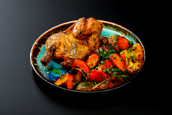 - 1 دجاج تكا بالخضار المشوي